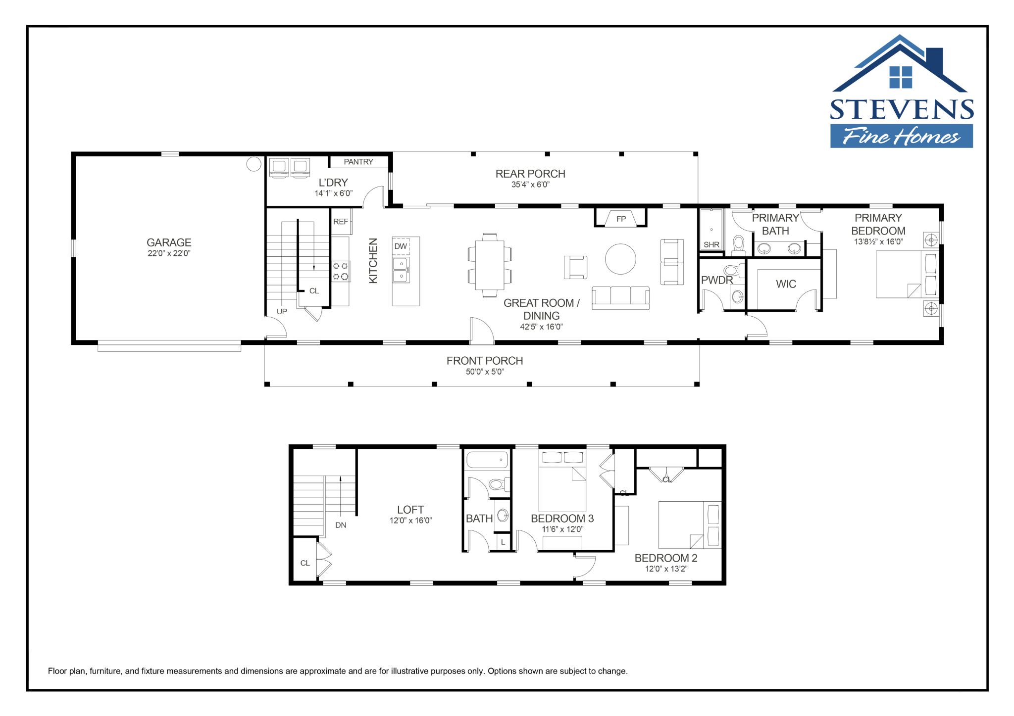 The Skipper features an expansive rocking chair front porch, a first-floor primary suite, an open floor plan that provides a wonderful gathering space for family and friends, a rear covered porch and a finished two-car garage. Upstairs, you'll find a spacious loft, two guest bedrooms, and a well-appointed guest bath with separate vanity and shower areas.